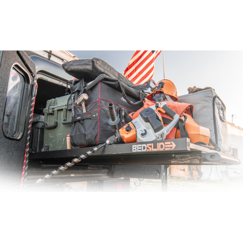 When the job or adventure demands more, the BEDSLIDE HEAVY DUTY delivers transforming a truck bed into a massive, 1-ton sliding drawer capable of carrying up to 2,000 lbs. of gear. Built in the USA from heavy-duty, weather-resistant materials, it features a rugged WEATHERDECK surface, BEDTRAX T-slots for easy organization, guardrails, and multiple locking positions for safety and convenience. Engineered to handle the toughest loads while keeping everything within easy reach, the BEDSLIDE HEAVY DUTY is the ultimate workhorse upgrade.