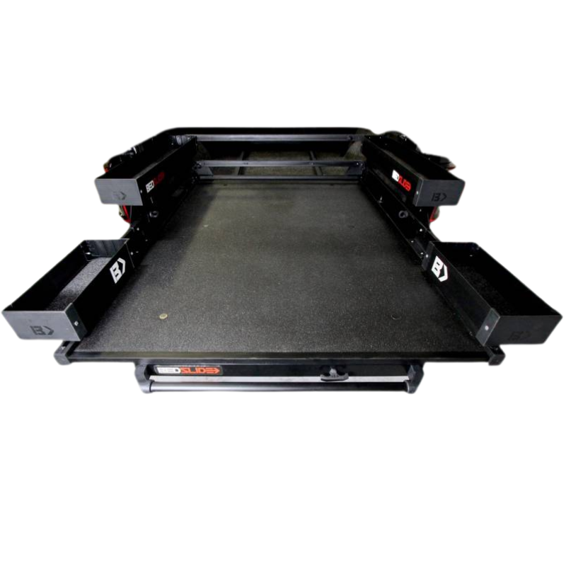 The BEDSLIDE CLASSIC transforms your truck bed into a massive, easy-access drawer with a 1,000 lb. capacity, letting you safely reach your gear from beside the tailgate — even under a tonneau cover or cap. Made in the USA with heavy-duty, weather-resistant materials, it features a durable WEATHERDECK surface, BEDTRAX T-slots for organizing and mounting, guardrails, and multiple locking positions for convenience and safety. Backed by a lifetime warranty with registration, the BEDSLIDE CLASSIC is the ultimate truck bed upgrade.
