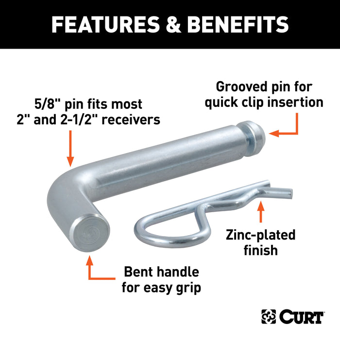 CURT Trailer Hitch Pin & Clip with Grooved Head, 5/8-Inch Diameter, Fits 2 or 2-1/2-Inch Receiver Model 21582