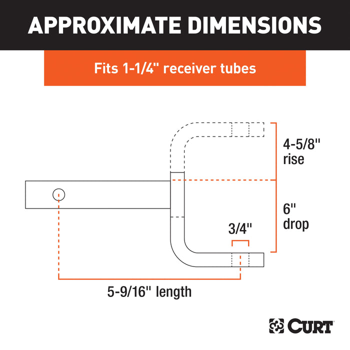 CURT Class 1 Trailer Hitch Ball Mount, Fits 1-1/4-Inch Receiver, 2,000 lbs, 3/4-Inch Hole, 6-Inch Drop, 4-5/8-Inch Rise Model 45028