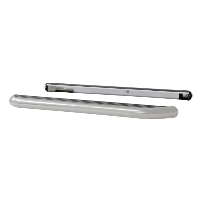 LUVERNE MegaStep 6-1/2" running boards are the ultimate combination of style and functionality. They have 5" wide treads that extend the full length of the side steps, and they feature a strong, lightweight aluminum core with a stainless steel trim for a bright, clean accent. MegaStep running boards mount easily with vehicle-specific brackets, pre-installed fasteners and an adjustable design to perfectly fit your unique vehicle. LUVERNE MegaSteps are designed to offer the best features from a variety of side accessory options. Their non-skid rubber treads cover the entire topside of the boards, giving them the functionality and convenience of a running board. However, unlike most running boards, MegaSteps are styled after the popular look of many nerf bars. This makes them a unique and useful extension of your vehicle. To give MegaStep running boards an even greater advantage over other side steps, they are built to outlast the elements. We construct them with a strong, lightweight aluminum base that naturally resists rust, and we finish them with a high-polish stainless steel trim. The trim is a heavy-duty, 18-gauge stainless steel to make it more than just a fancy accent, and its highly polished finish gives the running boards a bright, long-lasting shine. Installation of LUVERNE MegaStep running boards is easy and customizable. The boards come with pre-installed fasteners and attach using high-strength, vehicle-specific mounting brackets. They are also uniquely designed to be adjus table inward, outward, forward or backward, giving you complete freedom to position the steps wherever you want them. This particular set of running boards is designed to fit specific years of the Ram 1500, 2500, 3500 and Dodge Ram 1500 (see application info to verify fitment). Brackets for these running boards are included but ship separately.