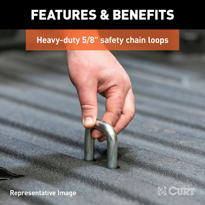 CURT gooseneck hitches are tested to SAE J2638 standards and built to handle up to 30,000 lbs GTW and 7,500 lbs vertical load, ensuring maximum strength, durability, and towing confidence for commercial and recreational haulers alike.
