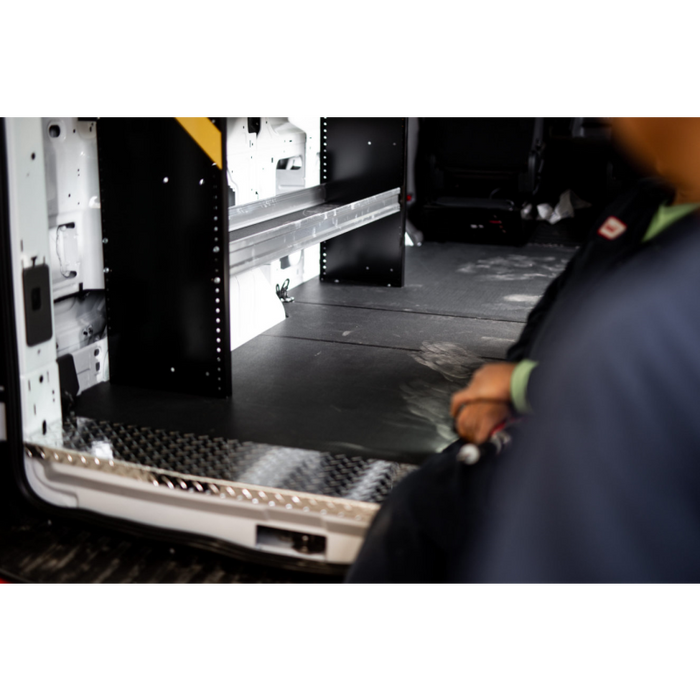 Each flooring solution, whether rigid composite (StabiliGrip, Evolve), hardwood (KK-Plus), or rubber, creates a durable barrier that protects the van’s metal floor from dents, chemical spills, moisture, and rot. The rigid floors provide a strong, level base for shelving and equipment installs, while rubber mats offer easy, removable protection. All options are engineered to withstand daily fleet wear and tear.