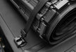 The BAK Industries Revolver X4s truck bed cover features a complete matte-black finish, ensuring a sleek and consistent appearance. This design extends across all components, from the mounting brackets and clamps to the hardware and aluminum slats. Whether open or closed, it exudes a subtle sophistication, seamlessly integrating into any environment. Such attention to detail underscores the product's dedication to both style and practicality.