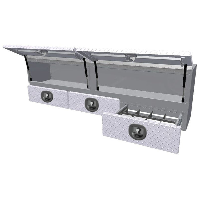 ATB Top Mount Toolbox Top Doors Bottom Drawers 21"H x 14"D x 94"W Bright Aluminum Model A-DU42-211494DT-T
