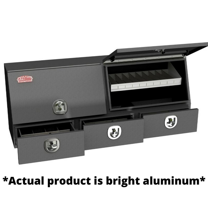 ATB strives to assemble and distribute the best toolboxes in the industry by using the highest quality materials. They use the most heavy duty steel, stainless steel, diamond plate and aluminum with heavy duty stainless-steel hinges, lid supports, heavy duty dual gas springs, heavy duty latches with locks, easy workable dividers, shelves, trays, and automotive weather stripping.