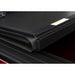 Operating the UnderCover Armor Flex truck bed cover is a breeze. Simply drop the tailgate and pull the latch release cables on each side of the bed. Then fold the cover toward the bulkhead until two-thirds of the bed is exposed. Secure the cover in this position with integrated safety straps or flip it flush against the rear window for full bed access. Utilize the integrated prop rods to keep the tonneau cover upright when needed.
