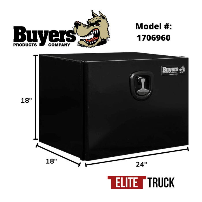 Buyers Products 18x18x24 Inch Black Pro Series Smooth Aluminum Underbody Truck Box Model 1706960