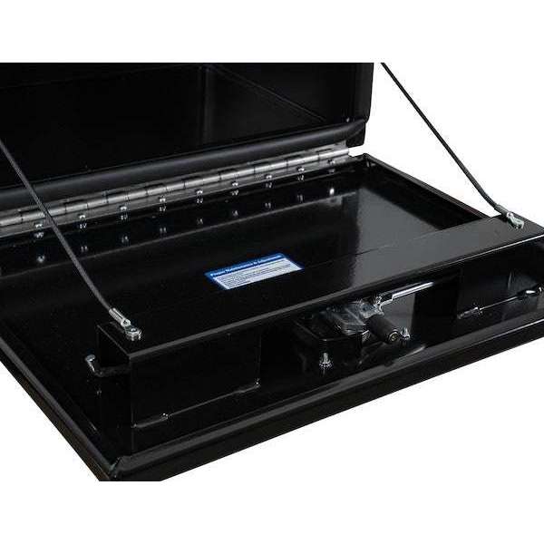 Buyers Products Pro Series underbody box is a heavier duty option, made from thicker steel than standard boxes. The 12 gauge powder-coated steel provides maximum durability for the toughest conditions. The door chains and hinges are also designed for the most demanding applications. A rain gutter with a bulb seal protects your tools from the elements.