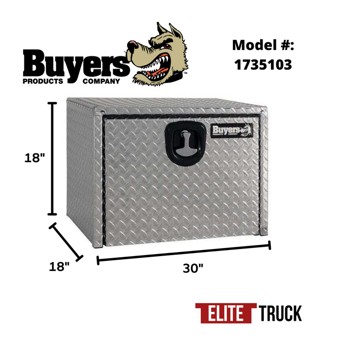 Buyers Products 18x18x30 Inch Diamond Tread Aluminum Underbody Truck Box with 3-Point Latch Model 1735103