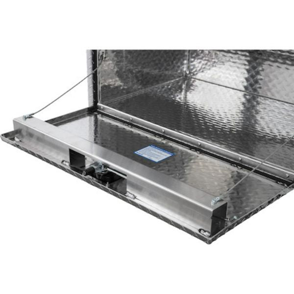 Buyers Products Pro Series underbody box is a heavier duty option, made from thicker steel than standard boxes. The 12 gauge powder-coated steel provides maximum durability for the toughest conditions. The door chains and hinges are also designed for the most demanding applications. A rain gutter with a bulb seal protects your tools from the elements.
