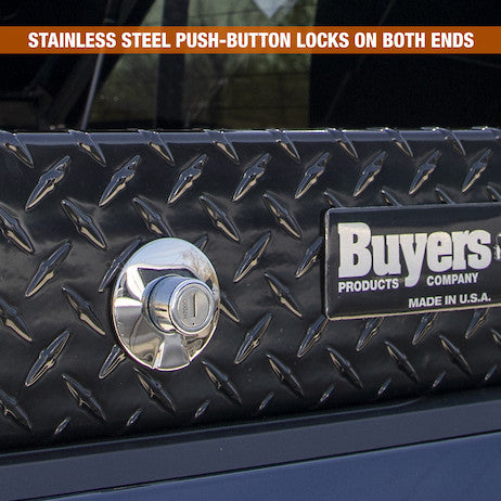 Each Buyers Products crossover tool box is assembled with high quality American corrosion resistant diamond tread aluminum that is durable but lightweight. Buyers Products offers three different high quality finishes for all of their crossover tool boxes. A durable gloss black or matte black, or a traditional bright aluminum are available.