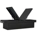 Buyers Crossover Boxes come with two options for doors. A single door, easy-open lid option is available. This comes with gas shocks that opens at a full 90 degrees and closes with a light touch. A two door, gullwing option is also available. This option includes two independently operating lids with gas shocks open and close with a light touch as well.