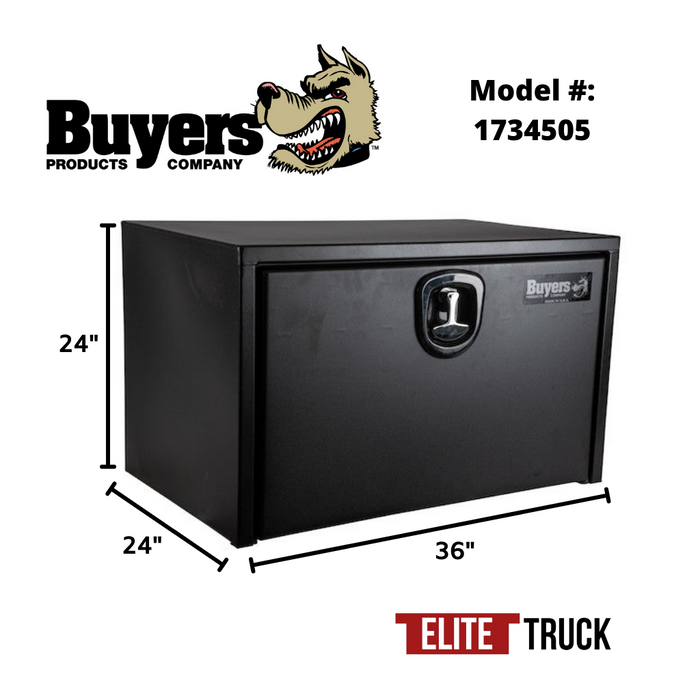Buyers Products 24x24x36 Inch Textured Matte Black Steel Underbody Truck Box with 3-Point Latch Model 1734505