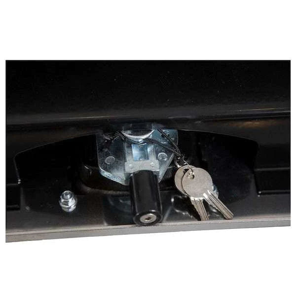 Buyers Products Pro Series underbody box is a heavier duty option, made from thicker steel than standard boxes. The 12 gauge powder-coated steel provides maximum durability for the toughest conditions. The door chains and hinges are also designed for the most demanding applications. A rain gutter with a bulb seal protects your tools from the elements.