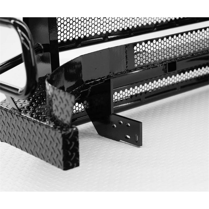 This frame mounted one-piece welded bumper provides maximum wraparound protection, strength & durability. The Legend front bumper features a wrap-around full grille guard, with 5/16" uprights and 12-gauge perforated steel inserts. Each bumper uses thick diamond plate steel construction and 4-1/2" schedule steel pipe, spanning the front of the truck.