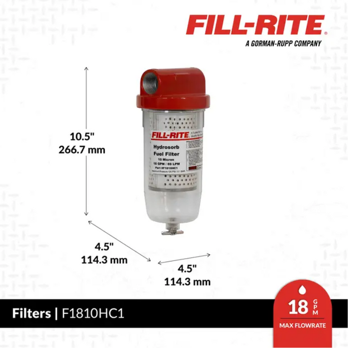 Fill-Rite 1" Clear Bowl Fuel Filter Kit For 8-18 GPM Pumps Model F1810HC1