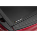 Operating the UnderCover Ultra Flex truck bed cover is simple and efficient. To release the cover, drop the tailgate, pull the latches located near the rear of the bed, and fold it towards the bulkhead. You have the option to secure the cover in the ⅔ open position using the integrated safety straps, or fold it flat against the rear window and support it upright with the built-in prop rods, providing full bed access.