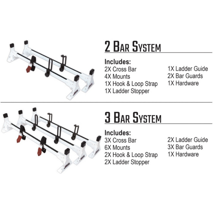 View full detailsVantech 2-Bar White Steel 42"- 46" (W) Ladder Rack System Universal Midsize Van Model H2095W The Vantech H1 steel system can hold up 600lb (evenly ...
