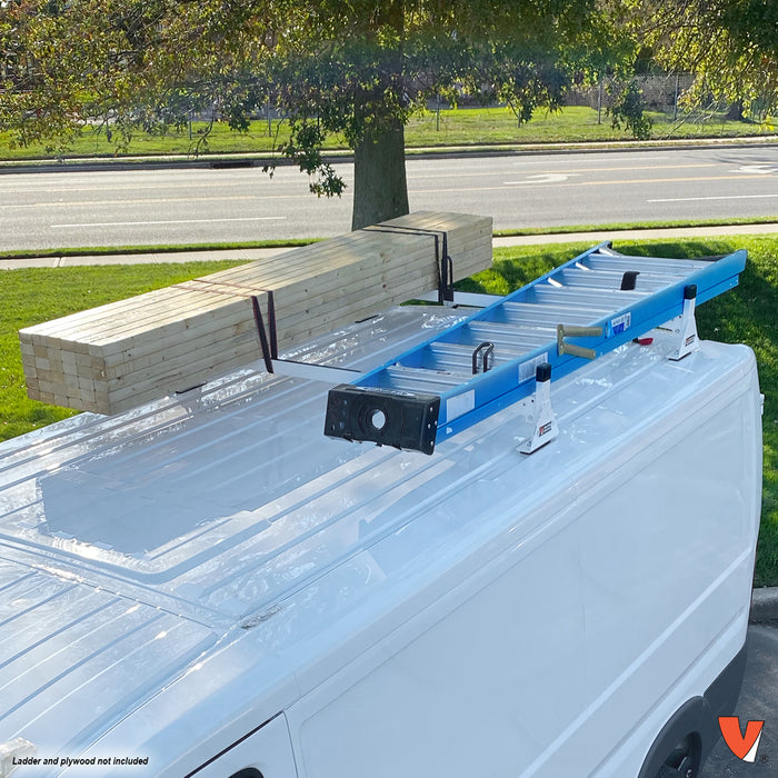Vantech is a premier van equipment manufacturer, providing upgrades for your cargo van to increase organization & efficiency. The H1 series rack system secures ladders and long items to the top of your van. Recommended for commercial use, this reinforced van ladder rack brings reliability & durability to the jobsite. Easily install the H1 van rack to any van, with racks fitting various commercial van make, models & wheelbases.