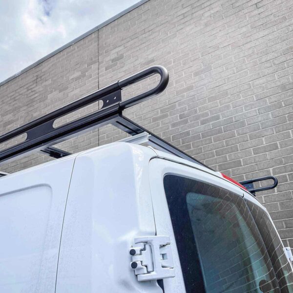 Constructed of heavy-duty aluminum, Vantech's 2.1 series cargo rack system carrying up to 750 pounds of ladders & gear. The van cargo rack is great for hauling big loads for both commercial and recreational uses. The side-rail accessory slots accommodate third-party gear such as awnings and water tanks. A strong design permits low-profile mounting bases, leaving the cargo rack low and close to the roof line.