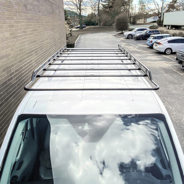 Constructed of heavy-duty aluminum, Vantech's 2.1 series cargo rack system carrying up to 750 pounds of ladders & gear. The van cargo rack is great for hauling big loads for both commercial and recreational uses. The side-rail accessory slots accommodate third-party gear such as awnings and water tanks. A strong design permits low-profile mounting bases, leaving the cargo rack low and close to the roof line.