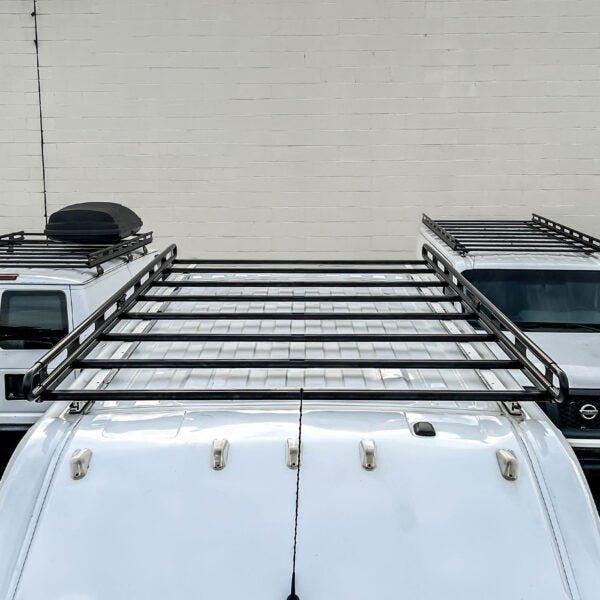 Constructed of heavy-duty aluminum, Vantech's 2.1 series cargo rack system carrying up to 750 pounds of ladders & gear. The van cargo rack is great for hauling big loads for both commercial and recreational uses. The side-rail accessory slots accommodate third-party gear such as awnings and water tanks. A strong design permits low-profile mounting bases, leaving the cargo rack low and close to the roof line.