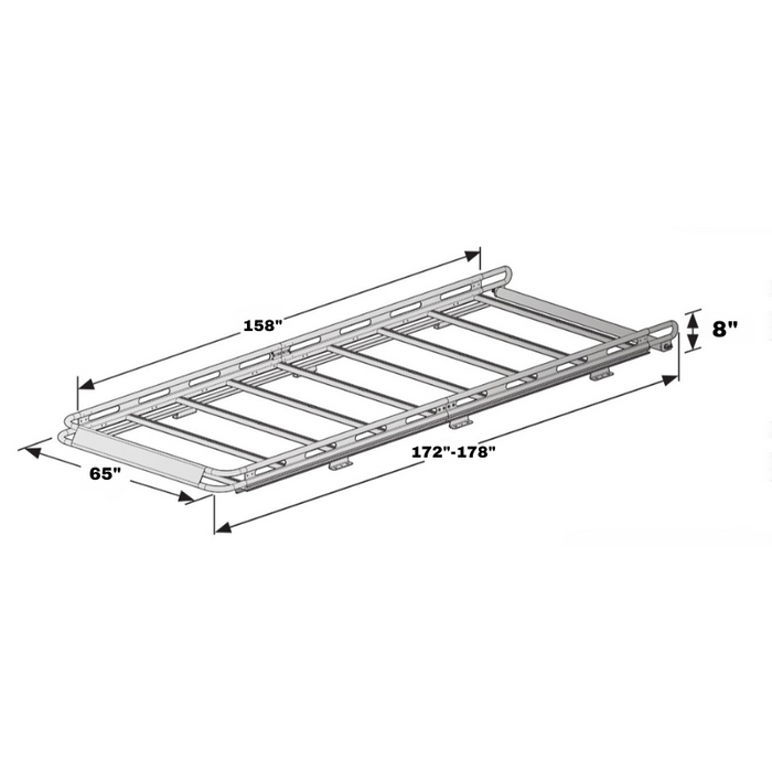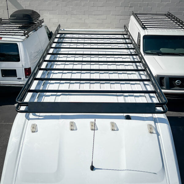 Constructed of heavy-duty aluminum, Vantech's 2.1 series cargo rack system carrying up to 750 pounds of ladders & gear. The van cargo rack is great for hauling big loads for both commercial and recreational uses. The side-rail accessory slots accommodate third-party gear such as awnings and water tanks. A strong design permits low-profile mounting bases, leaving the cargo rack low and close to the roof line.