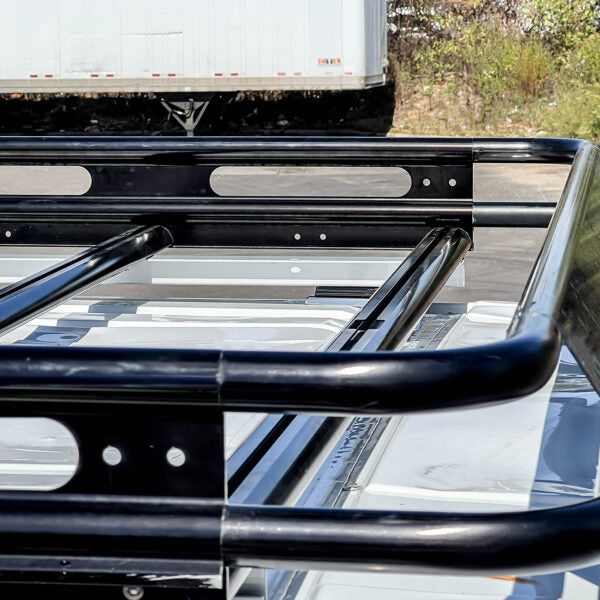 The 'EB' configuration is ideal for hauling larger and longer cargo. The 'E' front end acts as an extension to the overall system by adding an extra cross bar up front. The additional 19.5 inches of space accommodates fog lights and other clamp-mounted accessories. The 'B' roller located in the rear of the rack, allowing easy loading and unloading of gear and equipment.