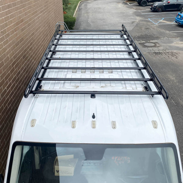 Constructed of heavy-duty aluminum, Vantech's 2.1 series cargo rack system carrying up to 750 pounds of ladders & gear. The van cargo rack is great for hauling big loads for both commercial and recreational uses. The side-rail accessory slots accommodate third-party gear such as awnings and water tanks. A strong design permits low-profile mounting bases, leaving the cargo rack low and close to the roof line.